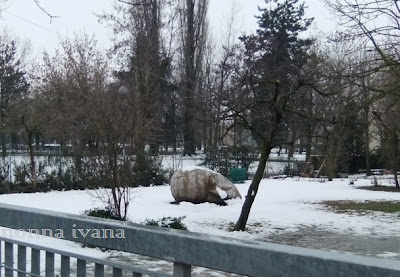Riprendo la via di casa, a piedi, prima dell'imbrunire...la neve non è più quel bianco immacolato, la giornata è stata un po' mite, il parco è triste, il volto è ancora più pensieroso!!!